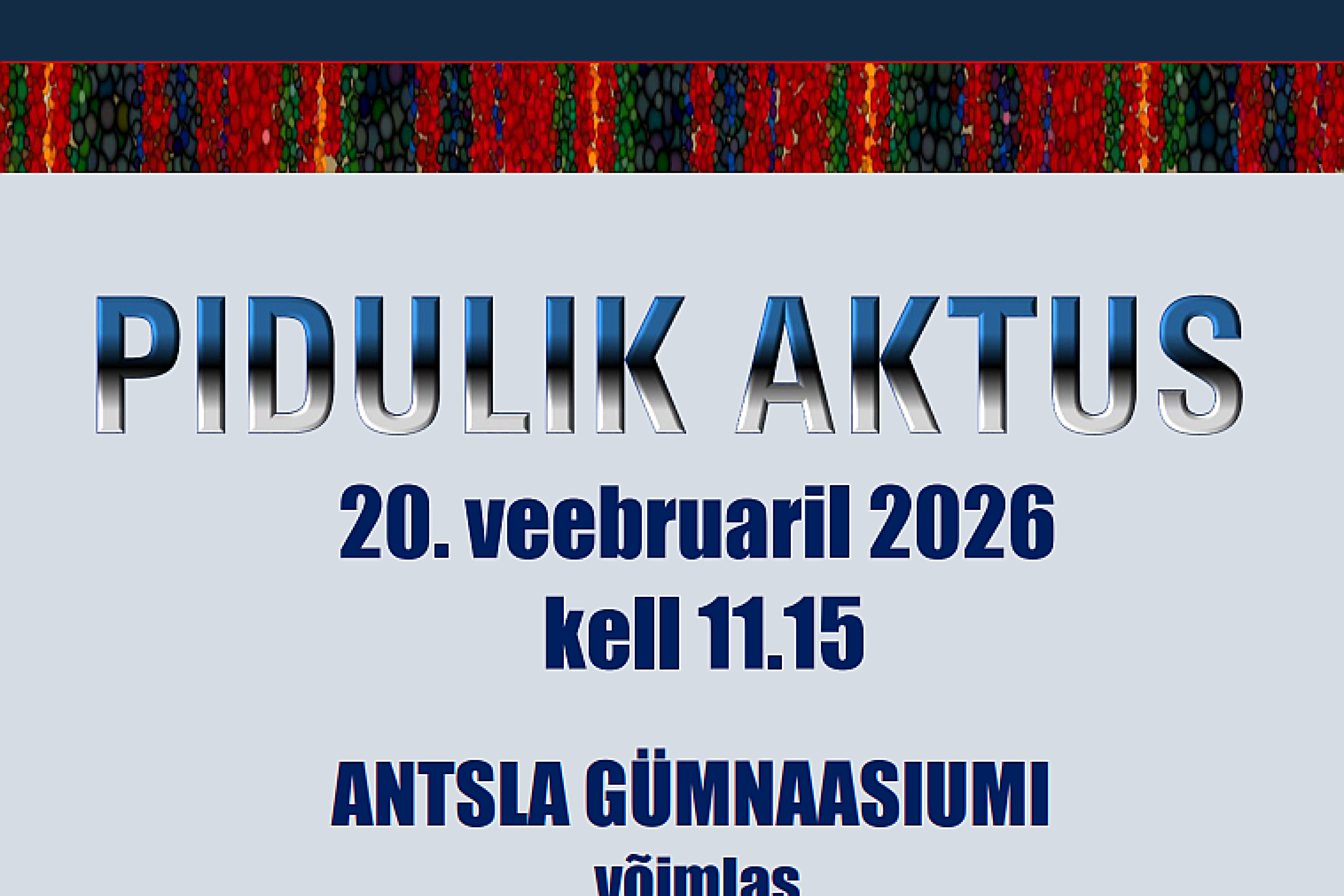 Kiidame! 27. jaanuar Loomise kuupäev 27.01.2026 Autor info Kiidame! 20. jaanuar Loomise kuupäev 20.01.2026 Autor info Autovaba päev Loomise kuupäev 13.01.2026 Autor info Kiidame! 6. jaanuar! Loomise kuupäev 06.01.2026 Autor info Vaata rohkem