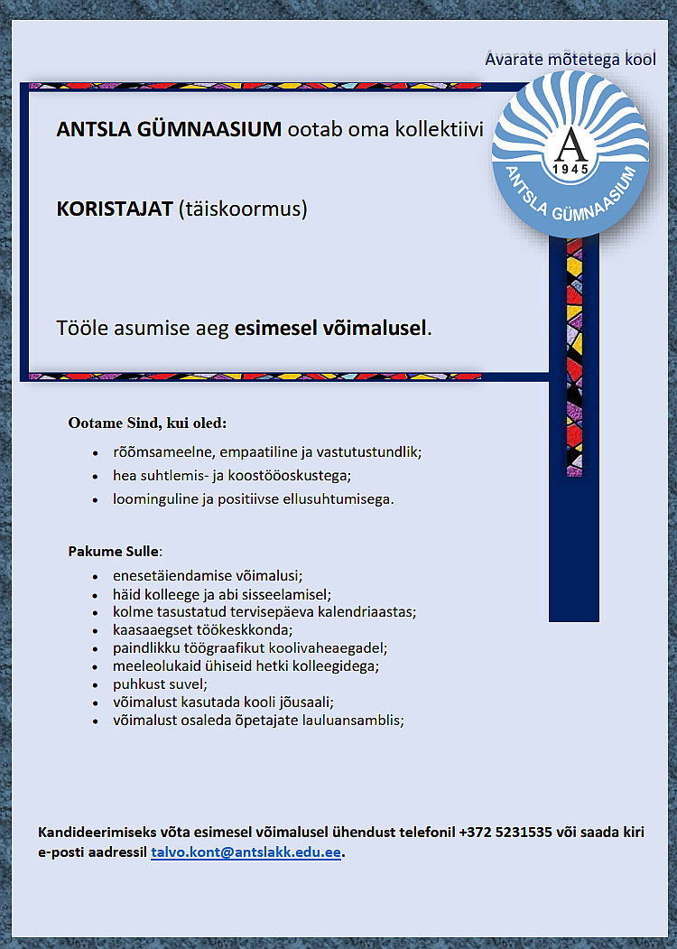 Antsla Gümnaasium ootab oma kollektiivi koristajat