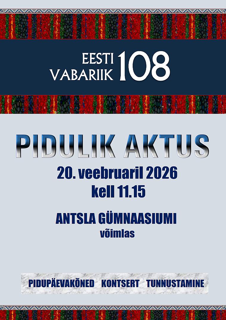 Kiidame! 27. jaanuar Loomise kuupäev 27.01.2026 Autor info Kiidame! 20. jaanuar Loomise kuupäev 20.01.2026 Autor info Autovaba päev Loomise kuupäev 13.01.2026 Autor info Kiidame! 6. jaanuar! Loomise kuupäev 06.01.2026 Autor info Vaata rohkem