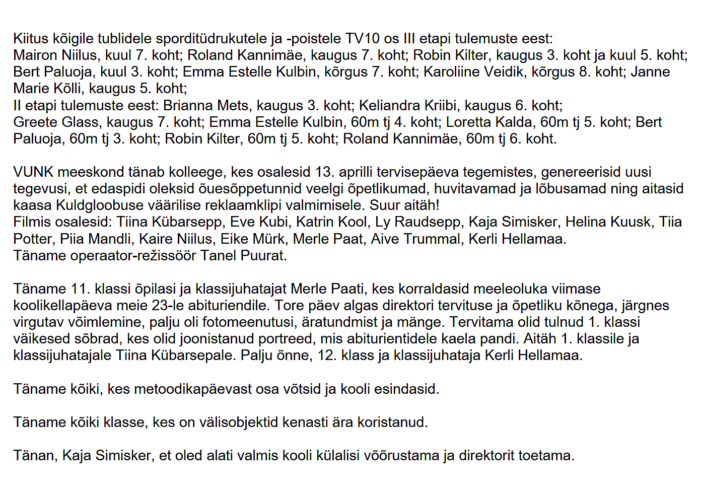 • Meie koolist