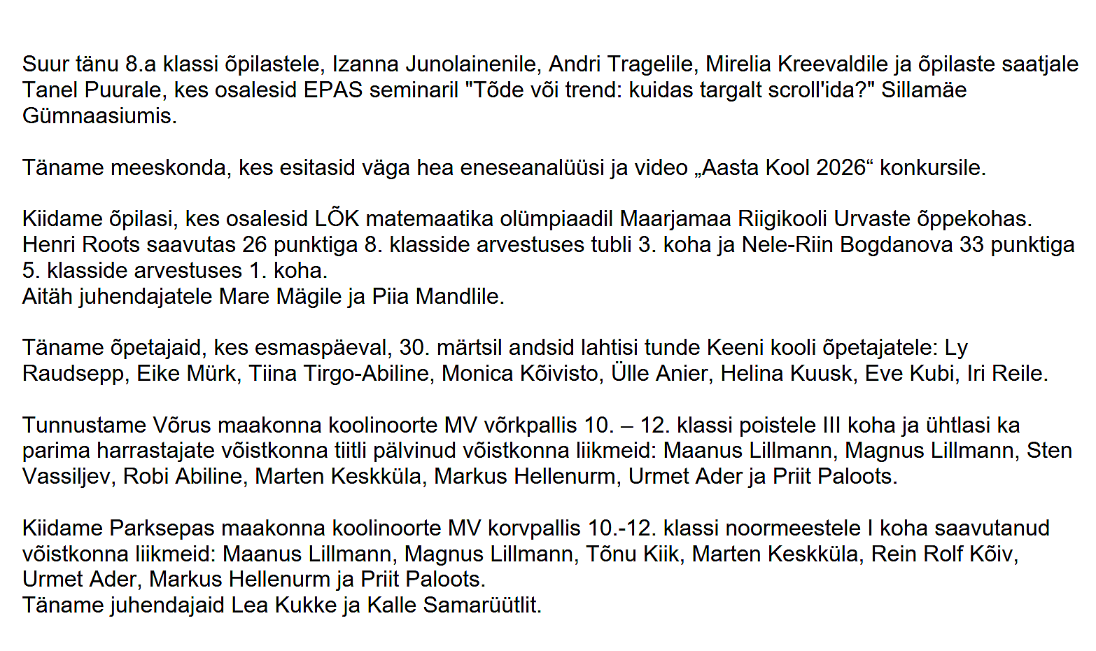 Oluline Heaolu konverents 2026 Loomise kuupäev 31.03.2026 Autor Urmas Soonvald Kiidame! 24. märts Loomise kuupäev 24.03.2026 Autor info Kiidame! 17. märts Loomise kuupäev 17.03.2026 Autor info Kiidame! 10. märts Loomise kuupäev 10.03.2026 Autor info Vaata rohkem